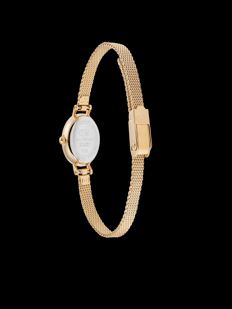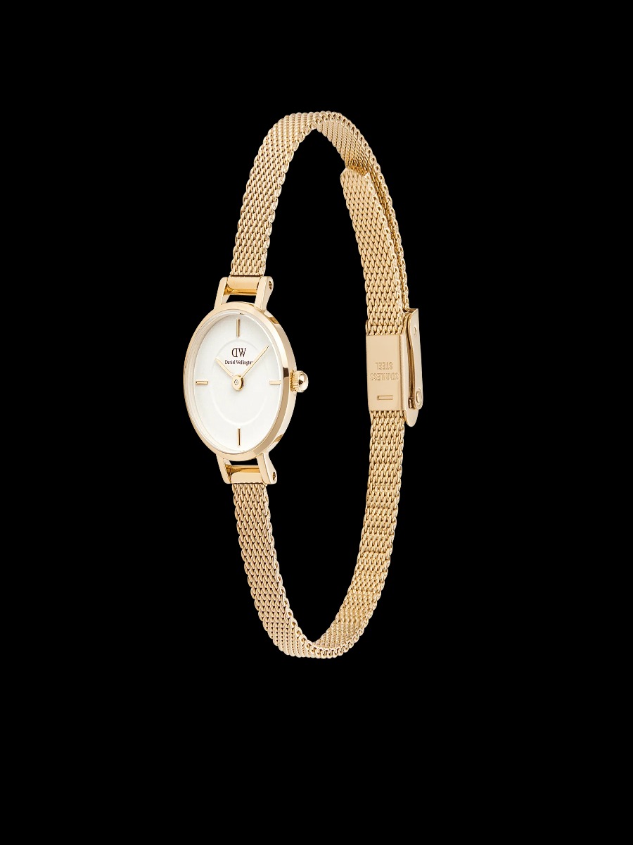 La cassa da 19 mm, lavorata in acciaio inossidabile 316L, è rifinita con placcatura PVD color oro, una scelta che garantisce brillantezza e resistenza all’uso quotidiano. Il profilo sottile da 6 mm lo rende comodissimo da indossare, mentre il cinturino in maglia milanese gold valorizza il polso con una luce raffinata e morbida.